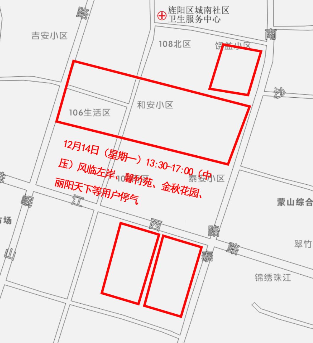 1、12月14日(星期一)13:30-17:00(中压)风临左岸、馨竹苑、金秋花园、丽阳天下等用户停气;