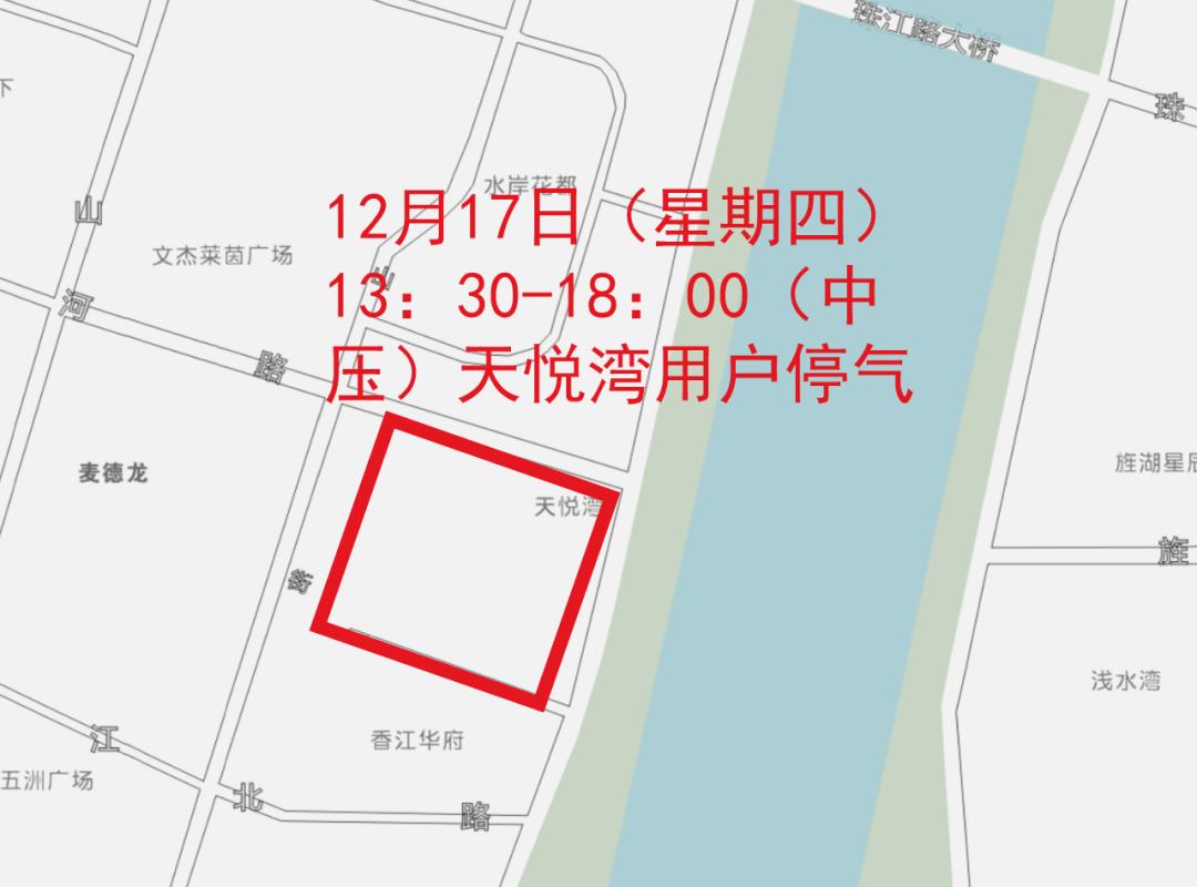3、12月17日(星期四)13:30-18:00(中压)天悦湾用户停气;