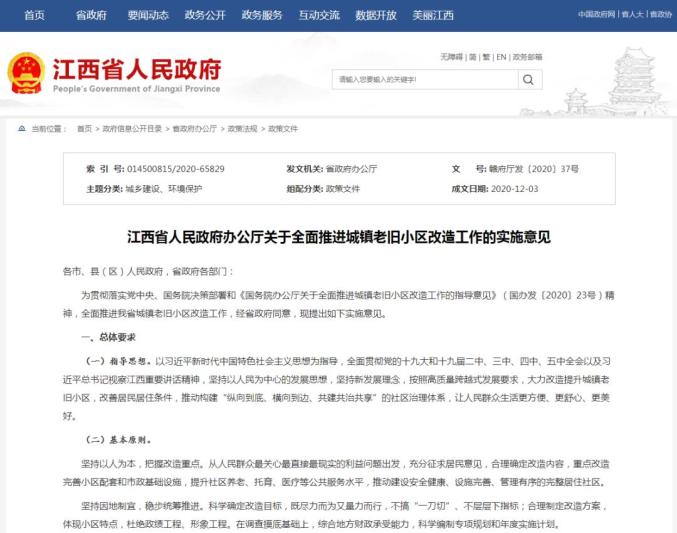 近日,江西出台了《关于全面推进城镇老旧小区改造工作的实施意见》(以下简称《实施意见》),全面推进我省城镇老旧小区改造工作。《实施意见》明确改造范围:城市或县城(城关镇)建成年代较早、失养失修失管、市政配套设施不完善、社区服务设施不健全、居民改造意愿强烈的住宅小区(含单栋住宅楼)。重点改造2000年底前建成的城镇老旧小区。