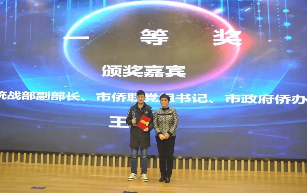 市委统战部侨务事务处处长申忠、市科技工作党委统战处处长朱翯、市华侨事务中心主任陈银儿分别为三等奖项目“基于取代钛合金PEEK材料的3D打印机”“灵鹰长空--北斗+5G多功能无人机”“上海数聚股份企业大数据智能管理平台”颁奖。