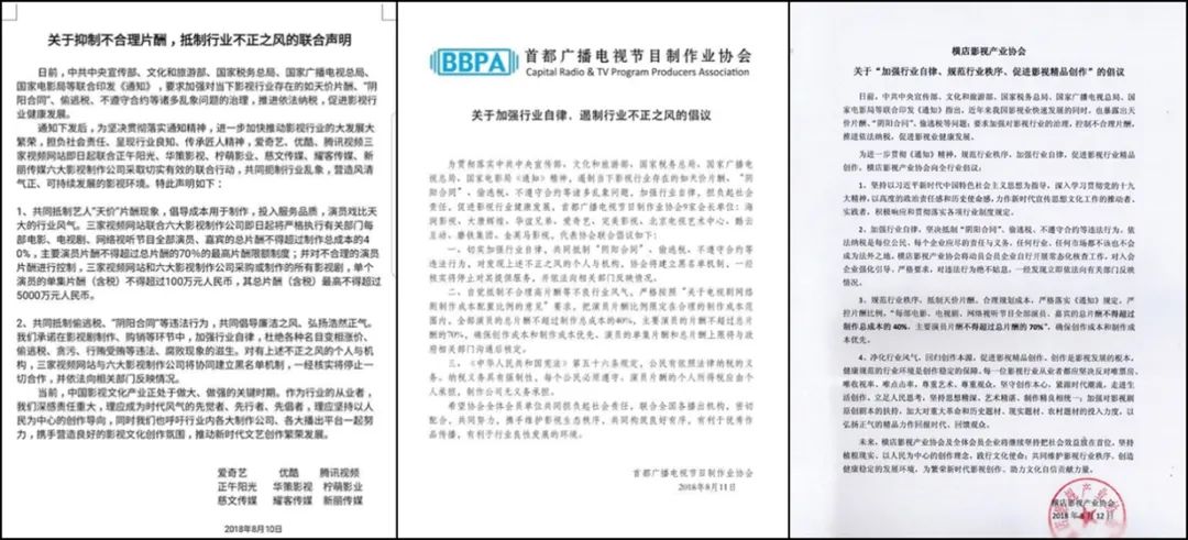 2018年8月,「爱优腾」联合多家影视公司发布了联合声明。