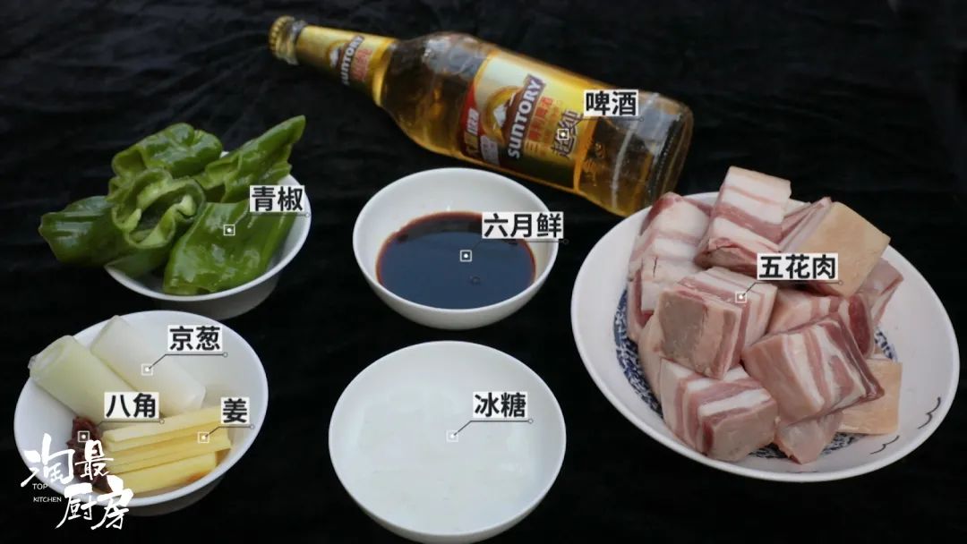 那今天我们请到了中国特一级烹饪师花奎大厨,来教大家用一瓶啤酒轻松完成酱香浓郁、肉味醇厚的家常版红烧肉~食材准备