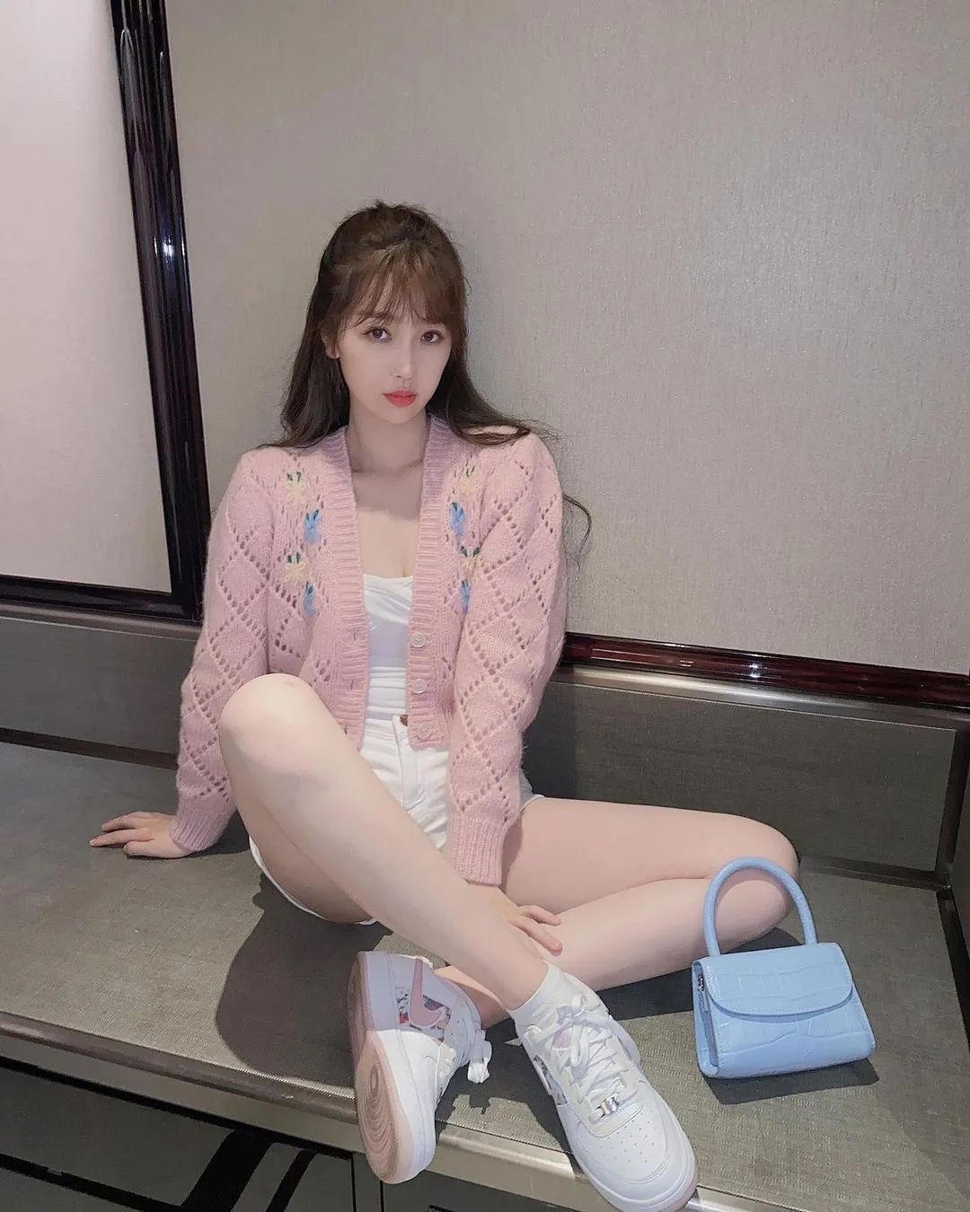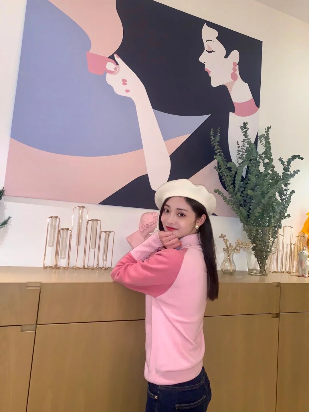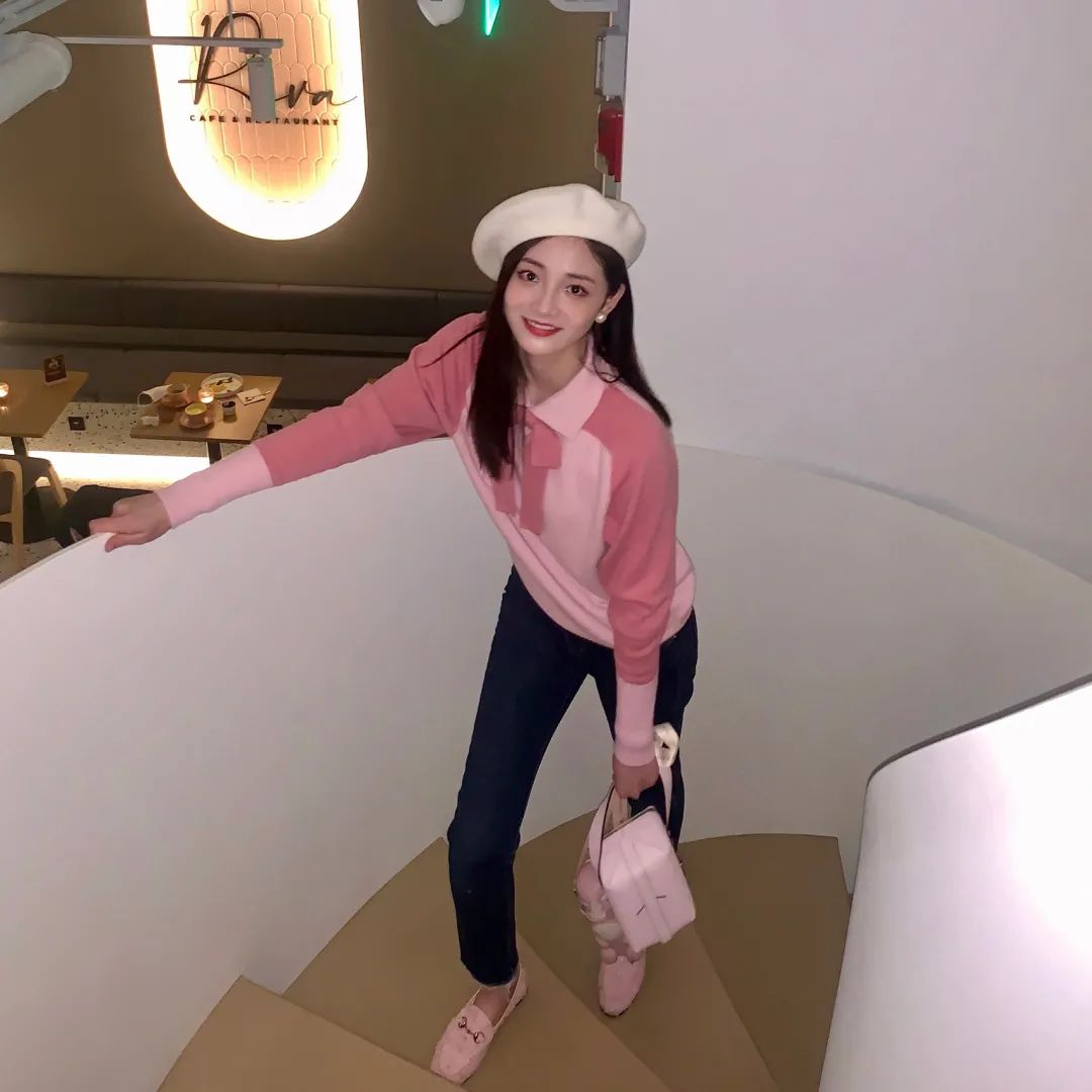 甜妹子周洁琼给人一贯是甜美清新的气质,除了她招牌的微笑,也少不了衣服搭配的助攻哦~粉色拼接针织衫配白色贝雷帽,再配合同色系鞋子包包,配饰,刚刚好的搭配不会过于甜腻,又给冬季增添了一丝甜蜜~