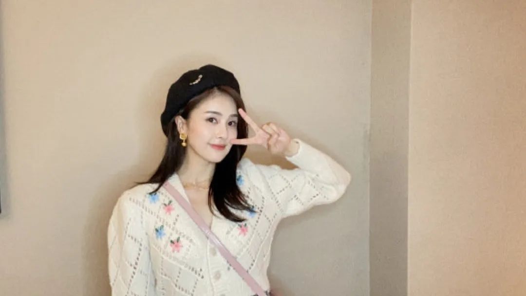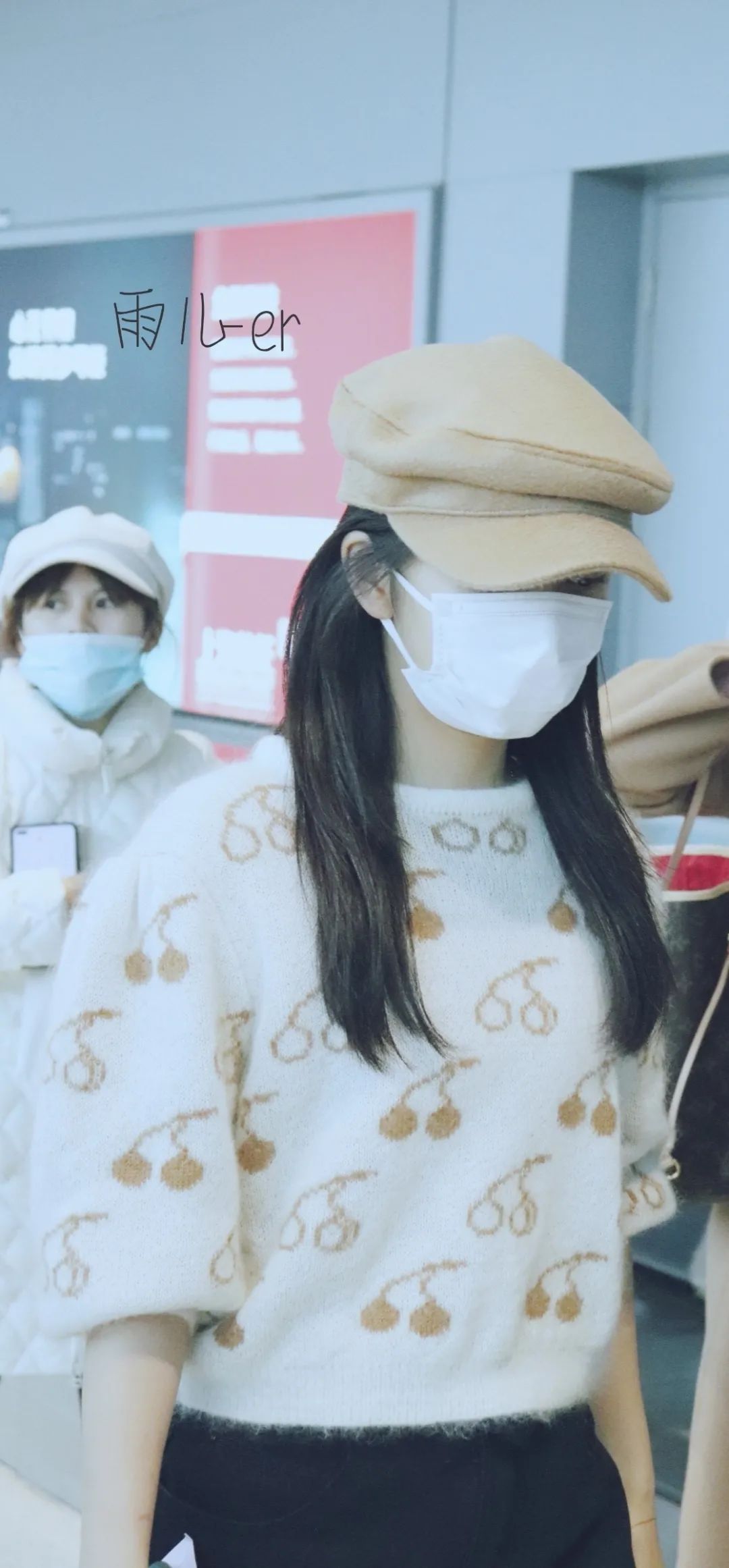 冬季依然想要低调又不平庸的妹子,可以来借鉴谭松韵的穿搭~ 身穿樱桃图案设计针织毛衣,同色系邮差帽,整体驼色系尽显温柔气质~