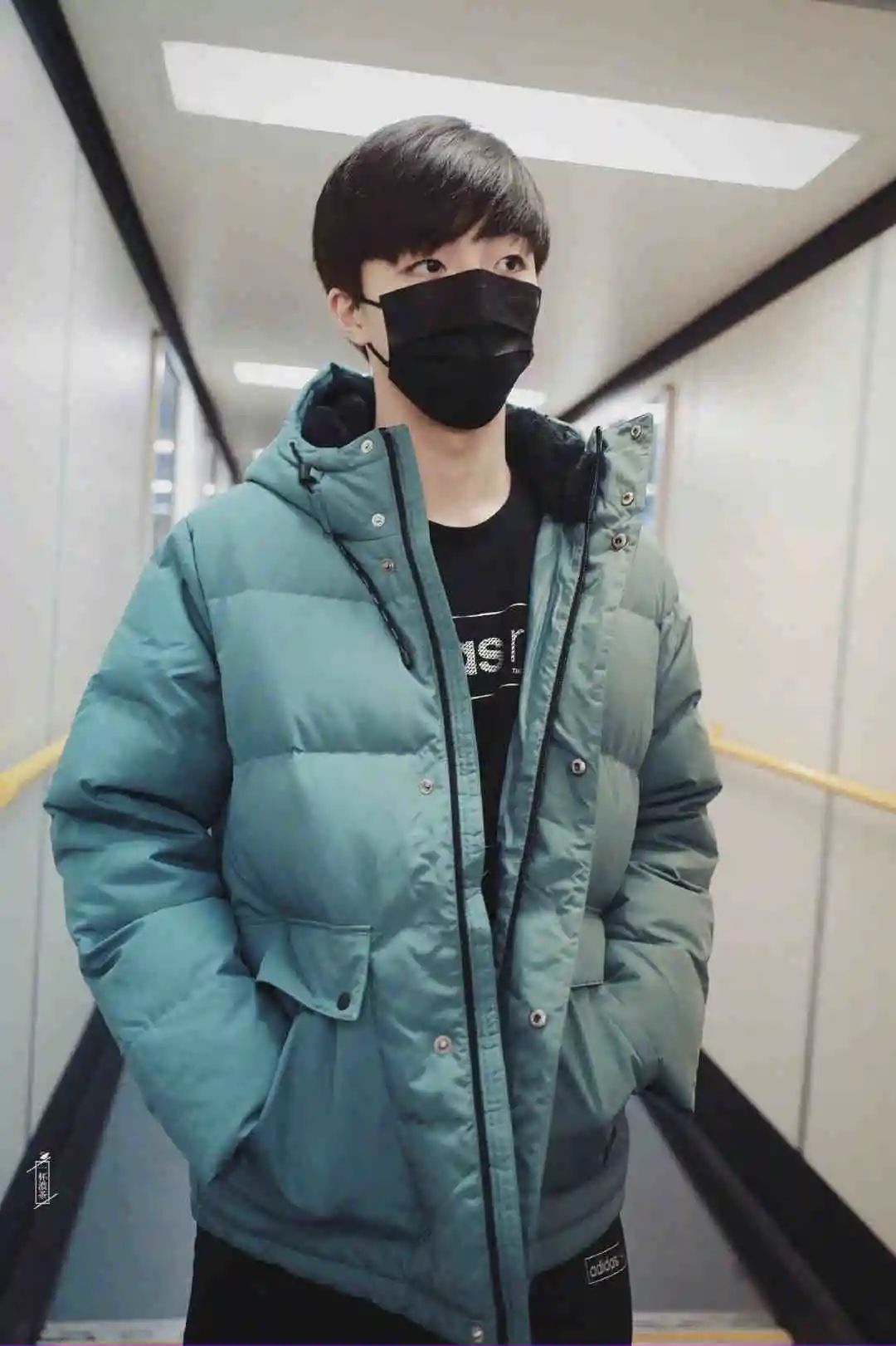 男生偶尔穿穿非黑灰白的羽绒服就会给人眼前一亮的感觉,陈立农这身蓝绿色的羽绒服很衬他白皙的肤色,头发梳得整整齐齐的像个乖巧懂事的阳光大男孩,不过哦,里面看似有些单薄的样子呢!