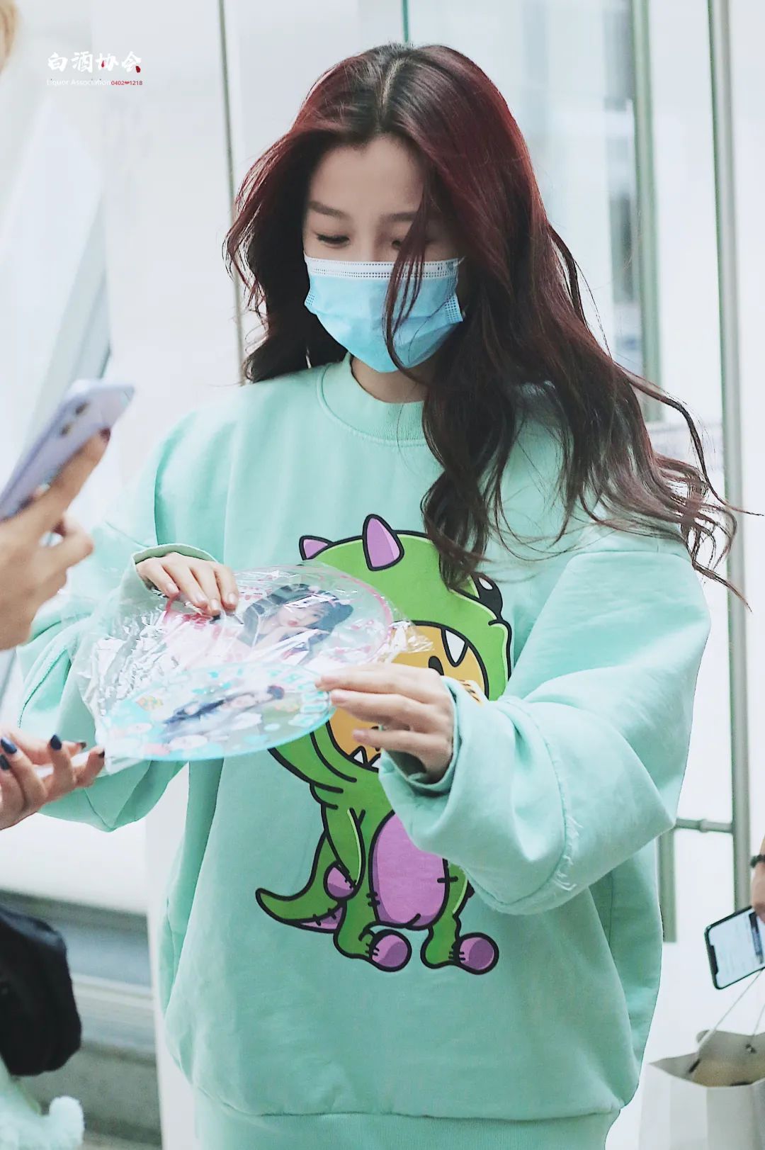 肉丝一直就是好甜好甜的那种女孩子,一身薰衣草紫色毛衣和小贴布LOGO都可可爱爱的,手机壳也是奶油紫的配色,加上一顶白色皮质画家帽真的是就是赵露思本人没错啦!RED is