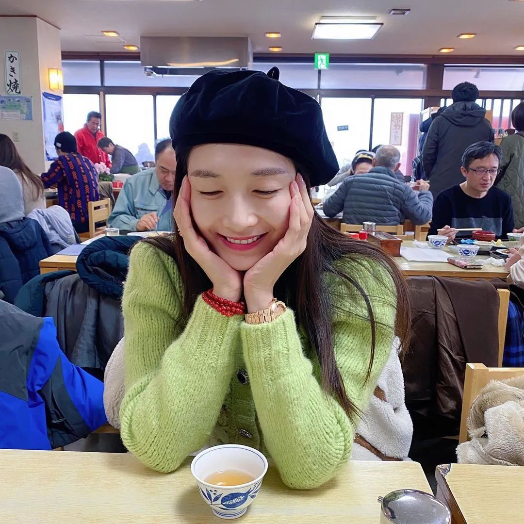 生活怎么可以不带点绿~江疏影和Jennie同款上衣,牛油果绿色针织开衫为沉闷的冬季带去更多生机~搭配黑色贝雷帽,更加可可爱爱~PURPLE