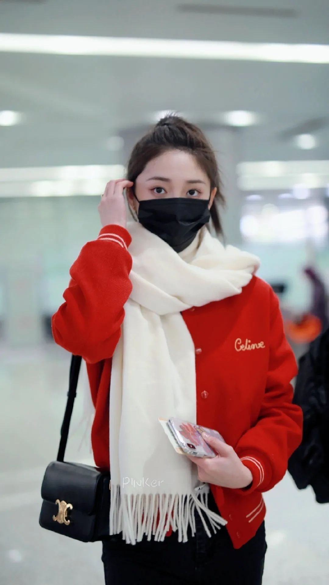 叮叮当、叮叮当、铃儿小叮铛~~周洁琼是不是把圣诞老人的外套偷出来自己穿了呀?正红色的棒球衫比较少人会穿,但是皮肤白的妹子穿上就很显气色。搭配宽厚的纯白色围巾整个人奶奶的甜甜的呢~~