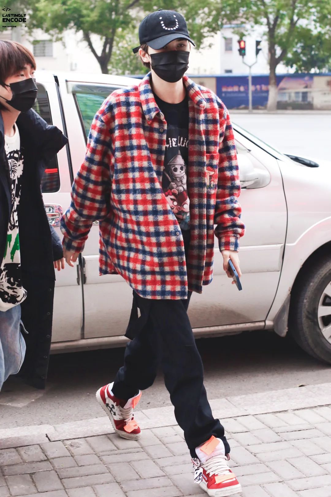 终于等来了酷盖王一博难得不是一身黑的造型,黑色外套里白T加黑红格衬衫的叠穿,没有特意精心凹的穿搭,舒适就好,是我们不懂了(哭唧唧)不过你看他鸭舌帽也是特意挑选了红色底纹的,好歹是有和ootd统一了......