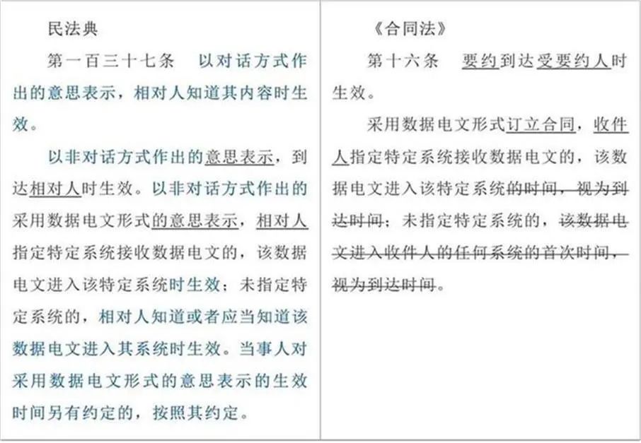 本条规定将《合同法》规定的“该数据电文进入收件人的任何系统的首次时间,视为到达时间”修改为“相对人知道或者应当知道该数据电文进入其系统时生效。”将“到达时间”直接规定为“生效时间”,且民法典调高了数据电文到达时间的认定标准,从“进入系统”的客观标准,调整为“相对人知道或应当知道”的主观标准,大大增加了银行举证证明数据电文到达时间的难度。
