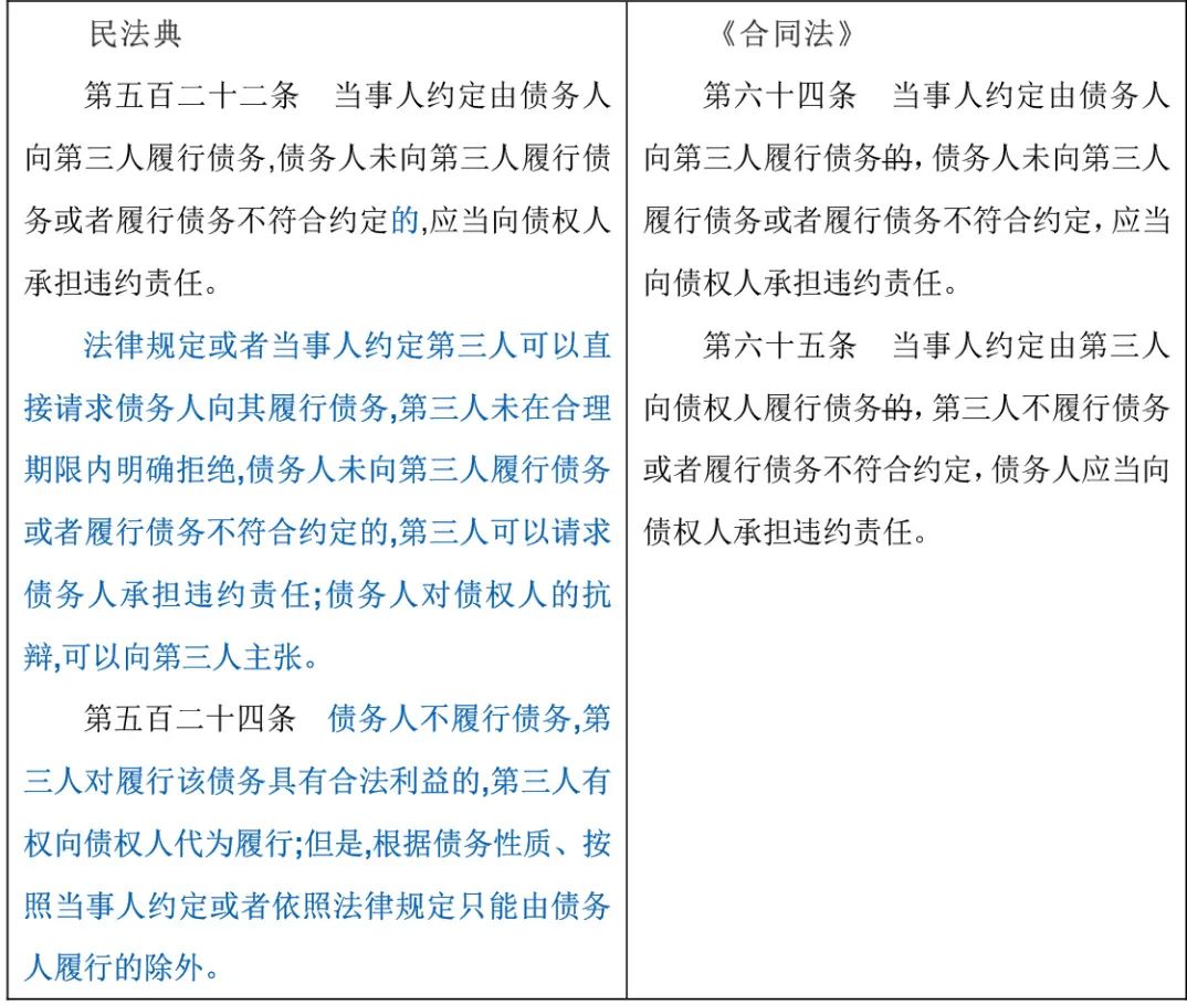 合同修改要点说明根据该条规定:“第三人有权向债权人代为履行”,因此第三人向债权人代为履行,是第三人的权利,若没有特别约定,银行不得拒绝。为避免第三方履行、清偿给银行带来不必要的损失,建议银行可在合同中明确约定对第三方代为履行、清偿进行一定限制,或者约定银行有权根据情况选择接受或拒绝。例如,在银行托管、保管业务中,第三方履行、清偿可能给托管、保管、资金划转等环节增加困难,因此有必要通过合同约定作出一定限制。