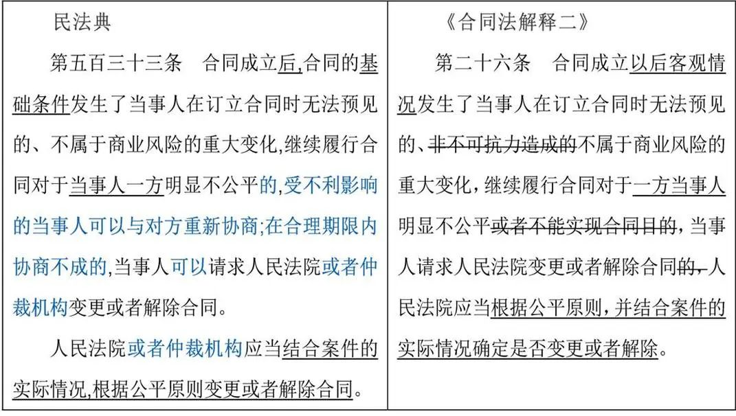 合同修改要点说明民法典对情势变更制度进行了修改,删除了“非不可抗力造成”,增加了协商制度。针对该条款,在出现新冠疫情、重大的政策调整、严重的金融危机等情况时,债务人可能向银行提出延期还款、减免本息等要求,从一定程度上损害银行的利益。因此建议银行可以考虑在合同中设立更加具体的违约责任条款,对于情势变更而导致违约的违约责任另行规定,从而更好地维护银行自身利益。