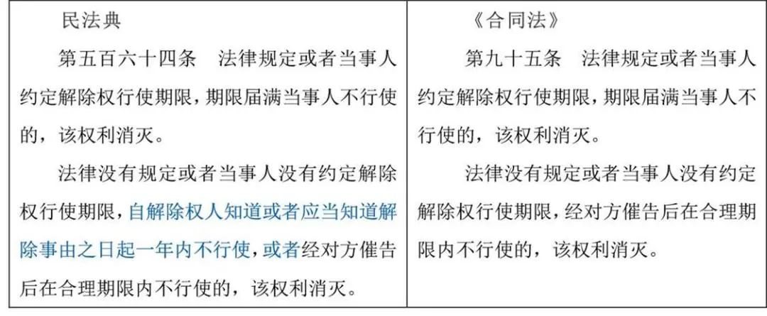 合同修改要点说明民法典增加了解除权的一年除斥期限,因此对于解除权的行使期限,除法律已有规定的,建议银行可在合同中自行约定,从而延长约定解除权的行使期限。