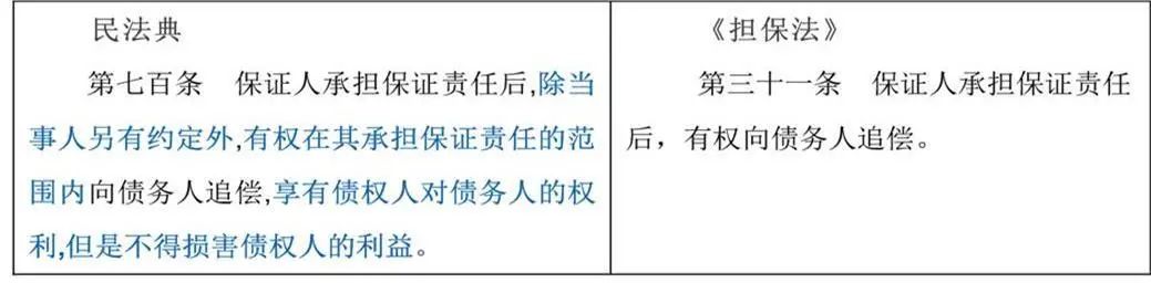 合同修改要点说明民法典规定“除当事人另有约定外”,保证人有权向债务人追偿,删除了向其他连带责任保证人追偿的表述,因此担保人之间在未有明确约定的情况下,无法根据本条款直接进行追偿。