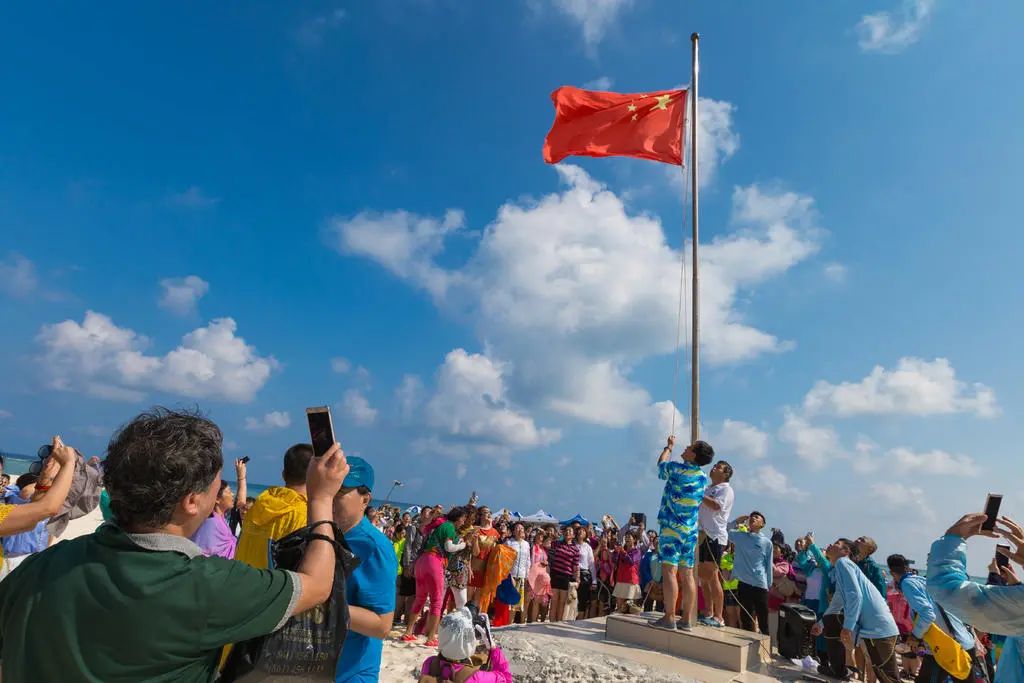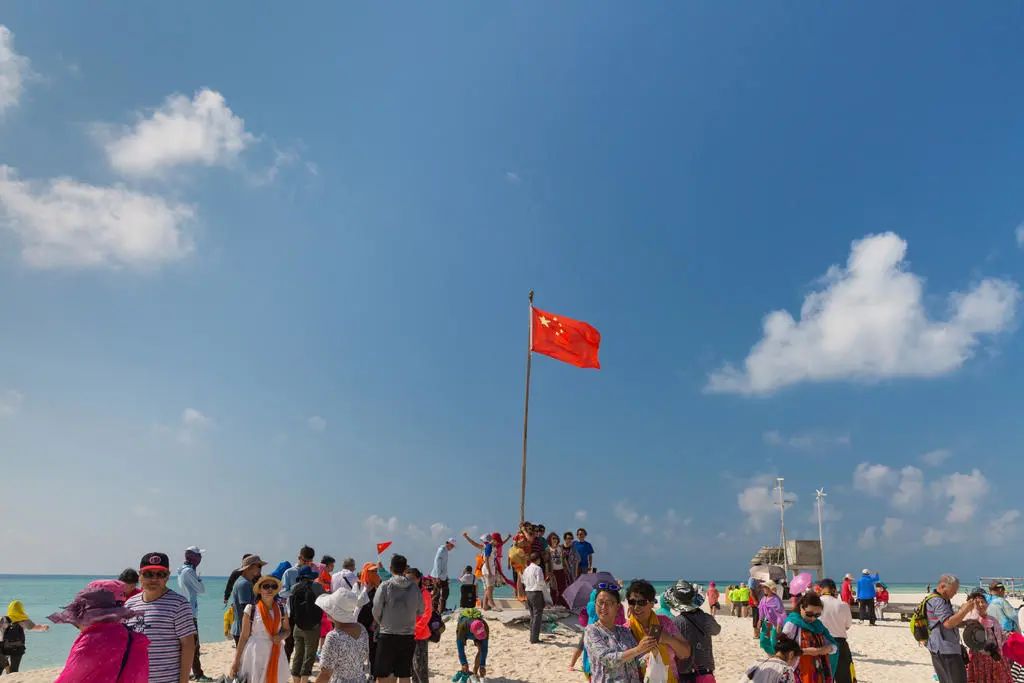 图/百家号“miao游天下”到了庄严的升旗仪式举行之际,每个上岛游玩的人,不管来自全国哪个地方,不管是什么样的身份,此刻都会仰望蓝天、白云与高挂的五星红旗。