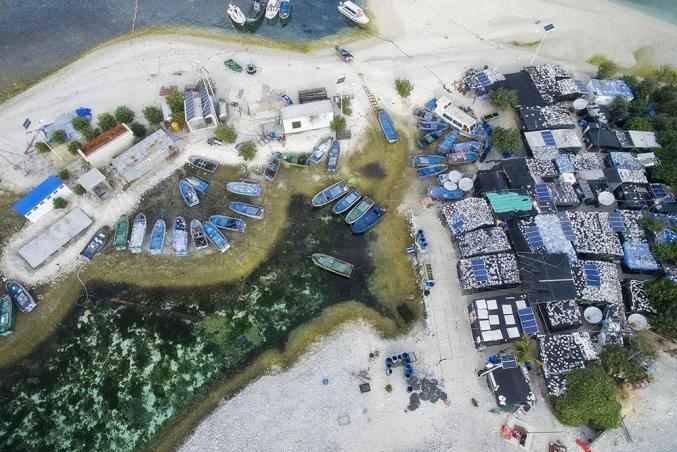 岛上的简易房屋依地势搭建,渔民们还会用这里盛产的大块贝壳和珊瑚礁放在屋顶上,以防屋顶被台风吹跑。
