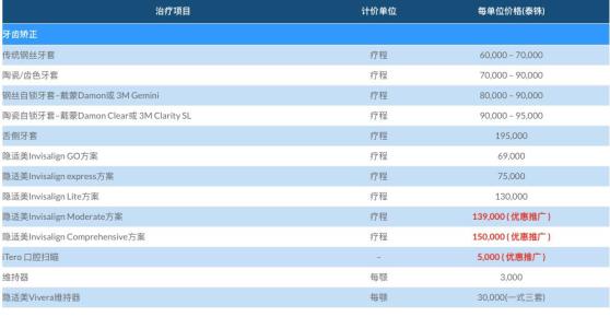 △国内金属牙套价格|来源:知乎@口腔微学堂目前非常受欢迎的隐适美牙套,在泰国的平均花费在5万-25万泰铢(人民币1-6万)之间,国内一线城市普遍在3-5万之间,而欧美国家做隐适美基本是七八千美元(约5万人民币)起步,泰国的价格可以说是相当便宜了。