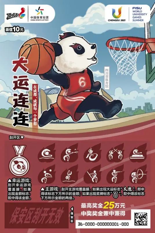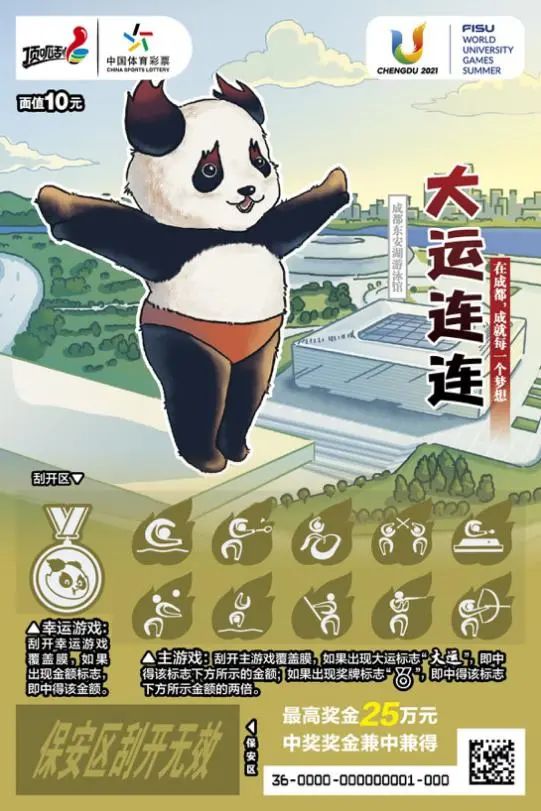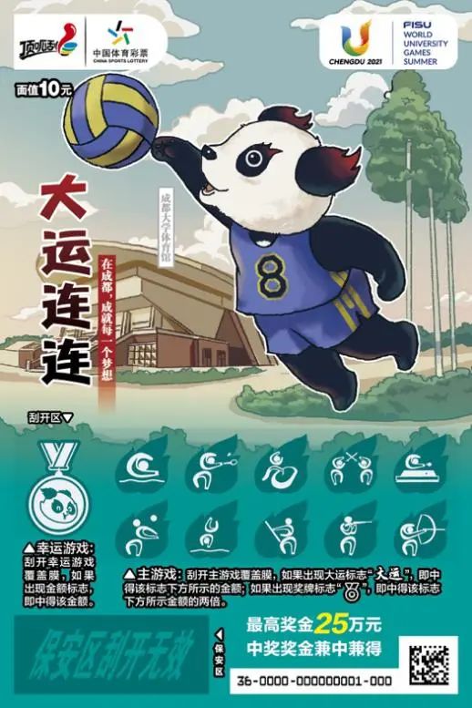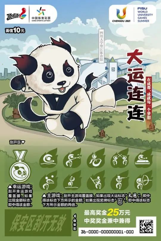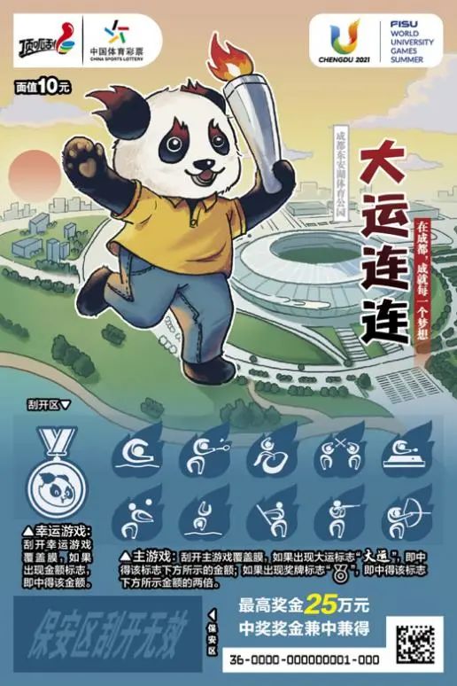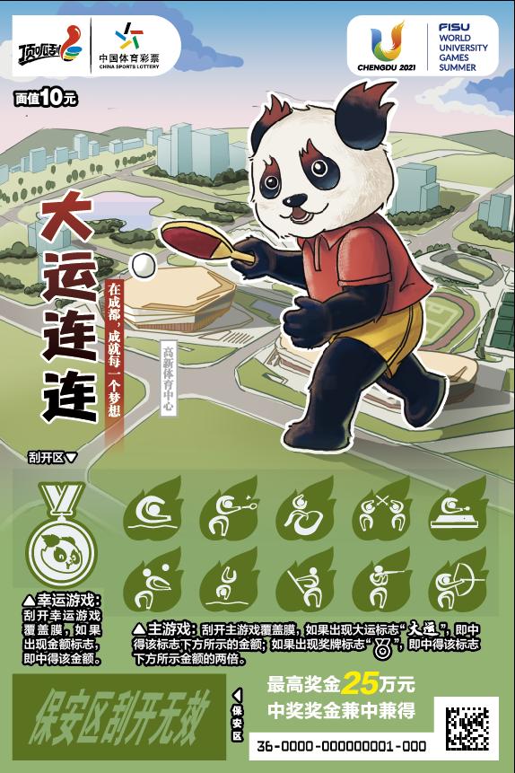 随着全社会对成都大运会关注的不断升温,为继续加大对成都2021年第31届世界大学生夏季运动会举办的支持力度,经国家体育总局体育彩票管理中心批准,四川省体育彩票管理中心将在今年年末发行大运主题即开型体育彩票2.0版本。