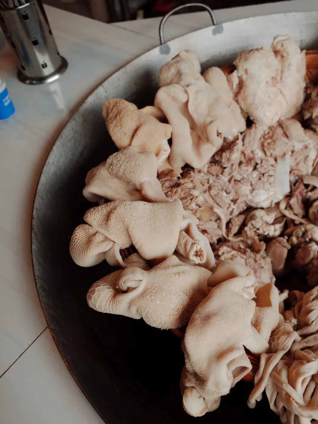 陈羊肉这家店一年四季只卖羊肉,他们家的羊肉汤只能用“纯粹”来形容。汤底就用白水炖羊肉、羊骨和羊杂,再放适量的花椒和八角,就没添加任何食材调料了,也没有任何其他的烹饪程序。