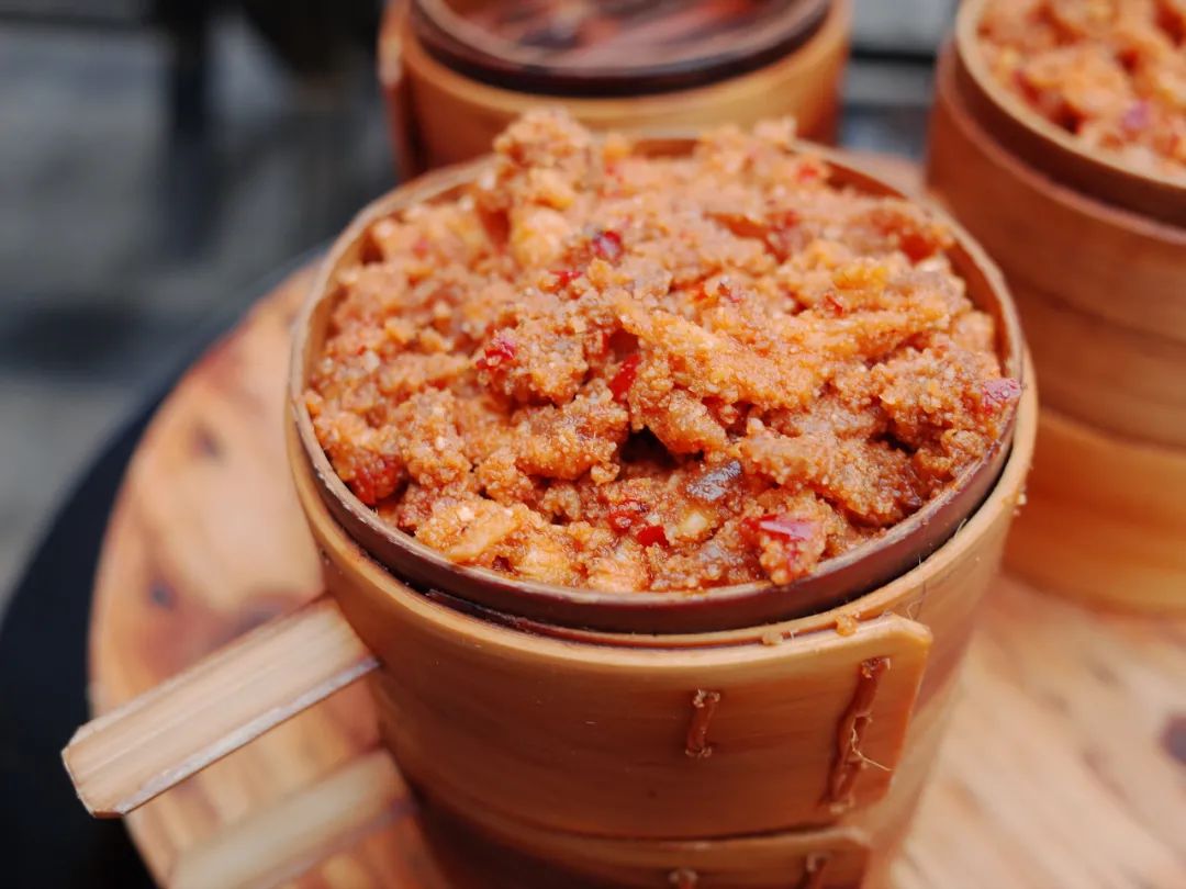 粉蒸羊肉也是李六姐的特色。精肥参半的羊肉,裹上一层炒黄的米粉,蒸出来软糯可口,不油不腻,下酒又下饭。