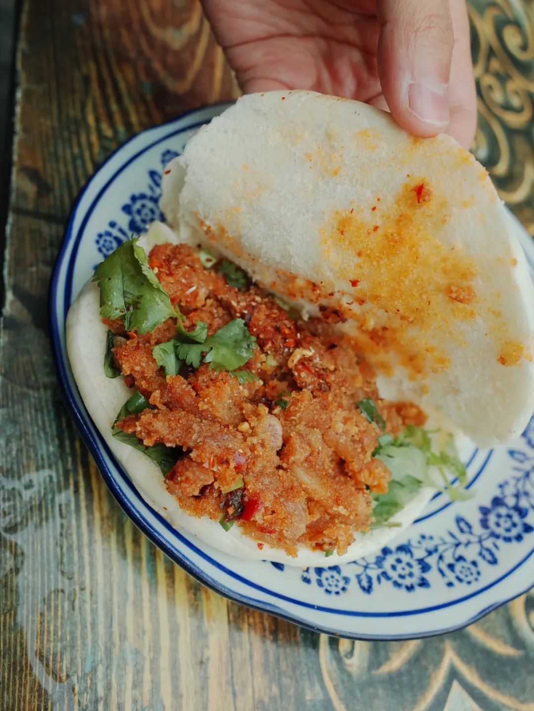 放点老板自制的榨菜丝,做成肉夹馍,馍香肉糯,榨菜脆爽,让人回味无穷。