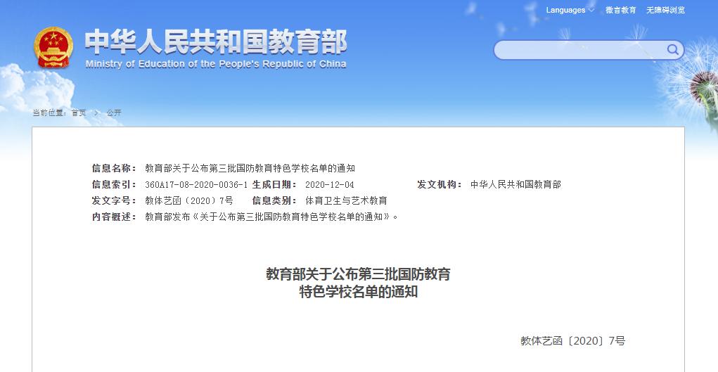 12月15日,从教育部获悉:北京航空航天大学等1095所学校被认定为第三批国防教育特色学校。其中,湖北有50所学校上榜!