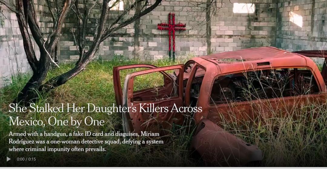这是一个令人感到愤怒、悲伤和绝望,又给人以希望的故事。长期以来,暴力犯罪团伙的恶劣行为在墨西哥的圣费尔南多留下了累累伤痕。《纽约时报》报道了一个叫米丽娅姆·罗德里格斯的女性,为了给遭到绑架并被残忍杀害的女儿寻求正义,她独自带着一把手枪、一张假身份证,完全凭着自己搜集的线索抓捕嫌犯,挑战着纵容犯罪份子逍遥法外的制度。然而,最终,她却被犯罪分子开枪打死在自己的家门前。