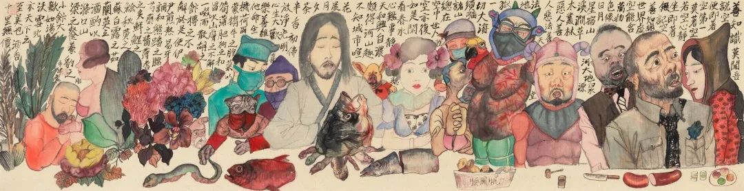 《心经之二》272cm×35cm 2020年 纸本设色 李津食在四川,味在乐山。