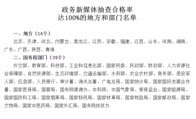 3.政务新媒体抽查合格率达100%的地方和部门名单