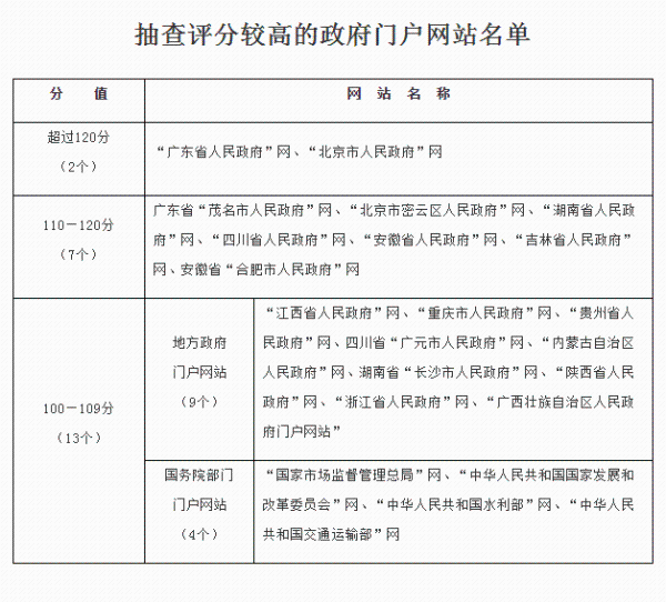 1.抽查评分较高的政府门户网站名单