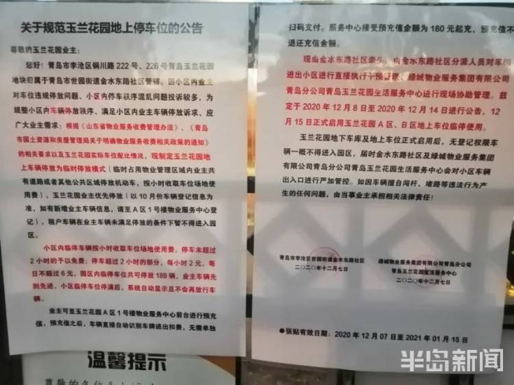 16日,家住李沧区铜川路玉兰花园小区的市民刘先生向本报记者反映,他们小区七八年了,地上的公共区域都是免费停车。这两天物业公司突然贴出一张通知,要对小区进行统一管理。