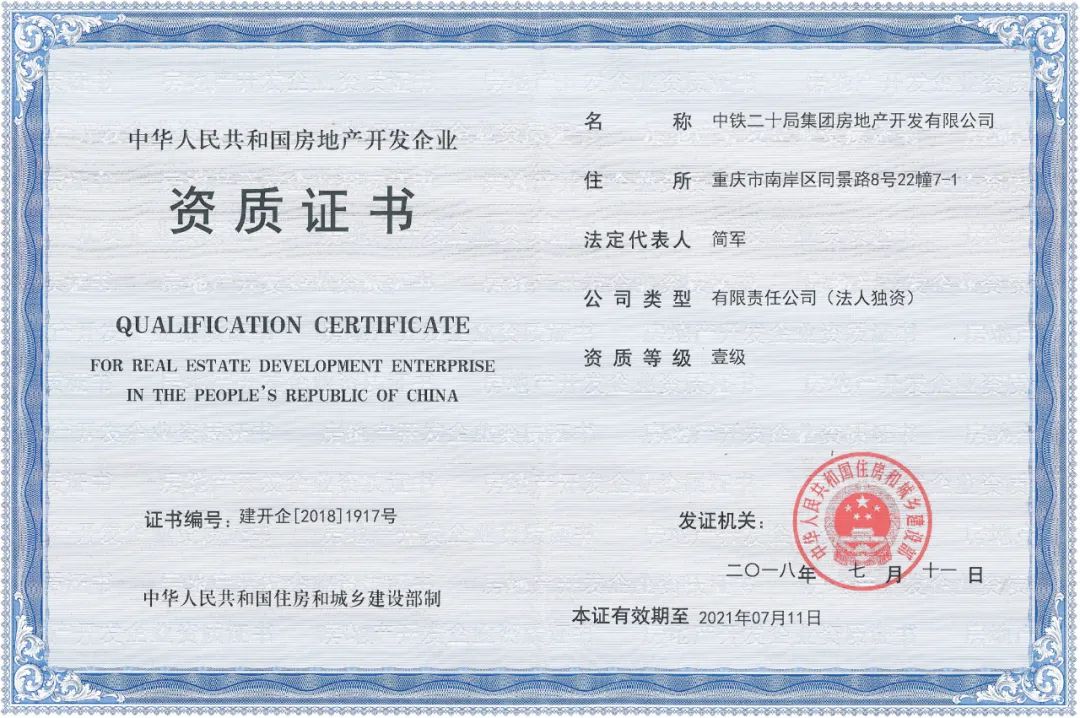 2018年7月17日成功取得房地产开发最高资质——一级开发资质,成为中国铁建为数不多拥有一级开发资质的房企之一。房地产公司进入中国铁建