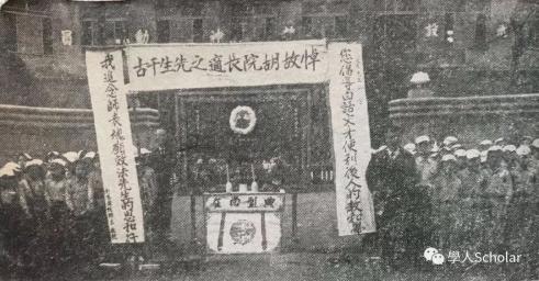 蒋介石亲往祭吊,并亲书挽联一副,辞曰:适之先生千古