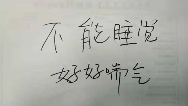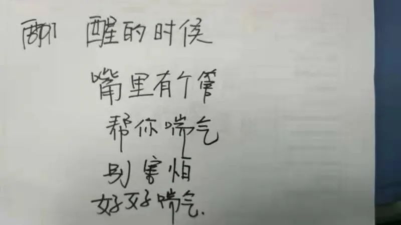 医生写字告诉患者,“醒的时候,嘴里有个管,帮你喘气,别害怕,好好喘气……”