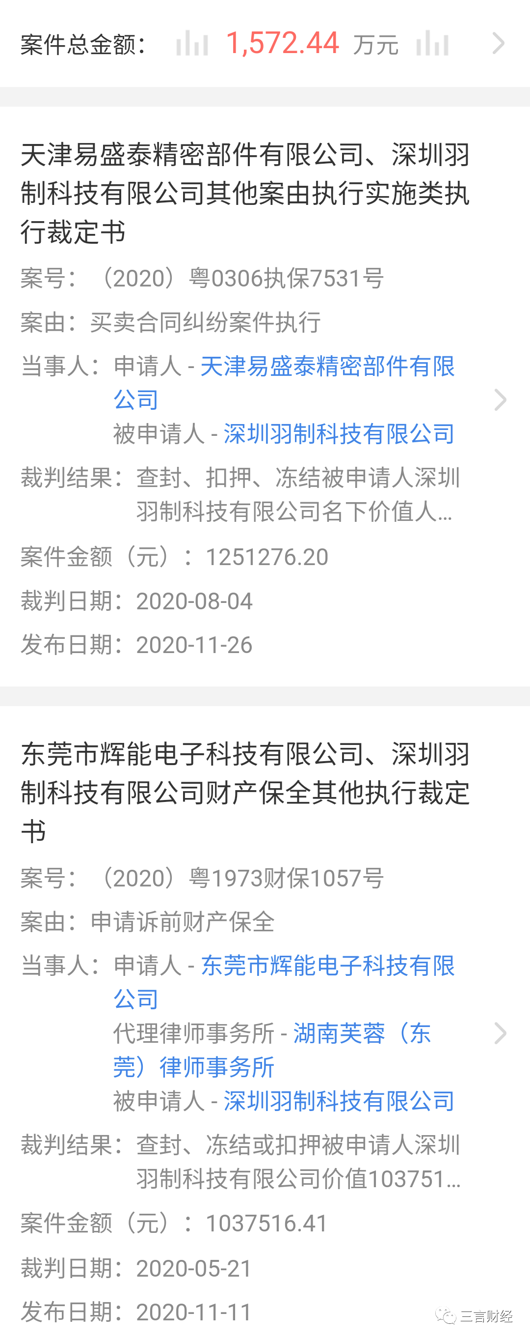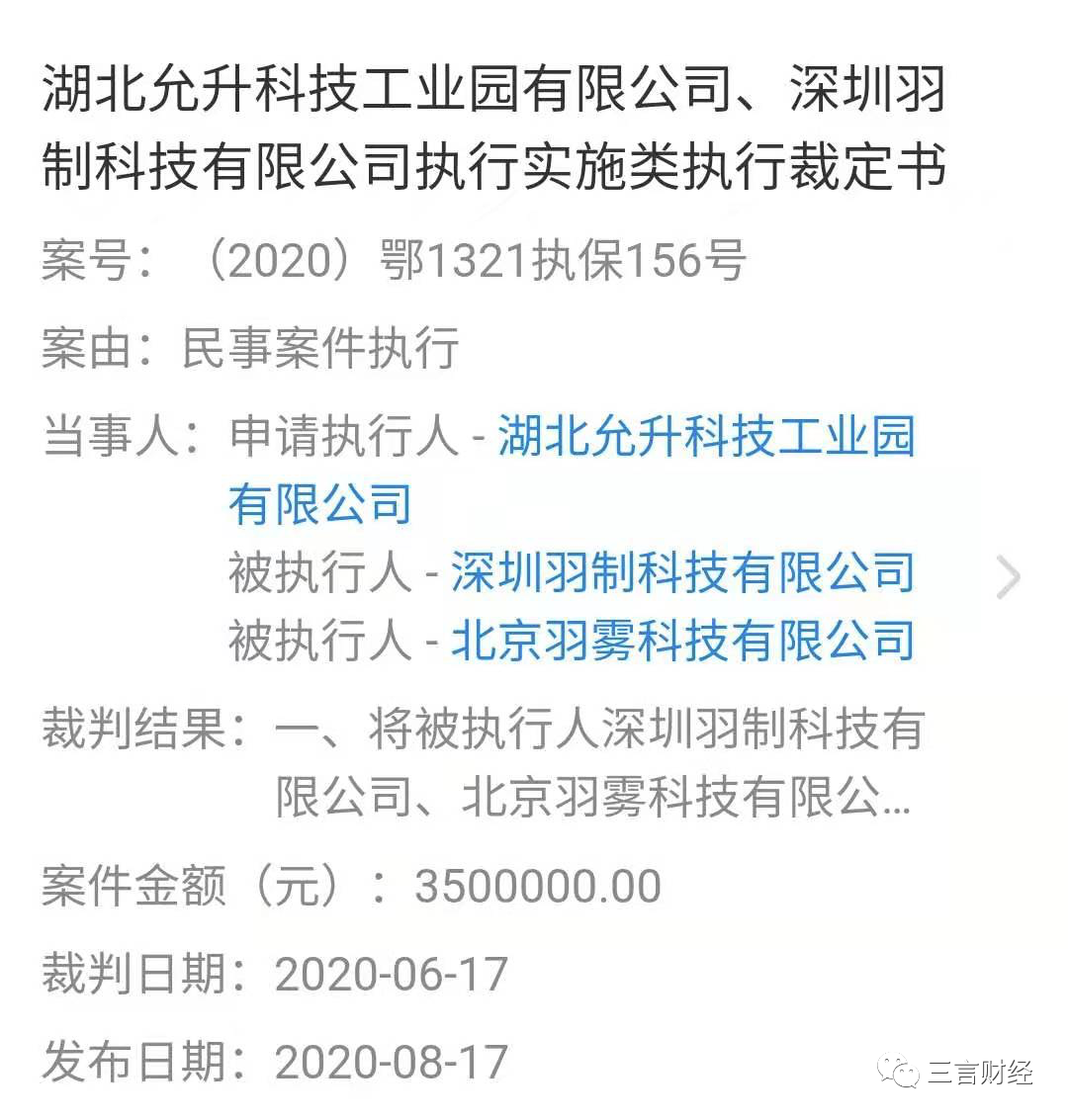 以其中一个为例,湖北允升科技申请冻结了羽制科技350万元财产。