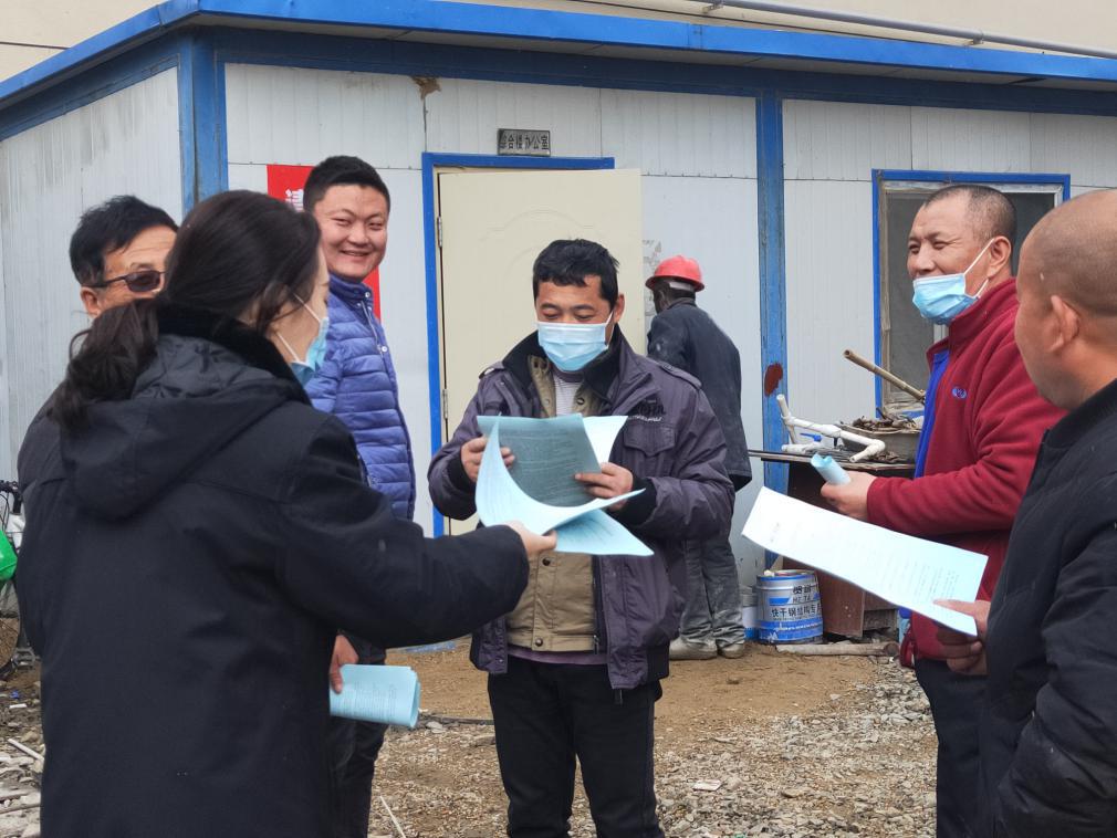 (与市法援联合普法 图)崔思文法官带领团队无畏泥泞与严寒,奔赴吉林市内多个建筑工地,面对面与农民工真诚交流,给广大农民工送上法律温暖与保障,现场解答农民工疑问,普及农民工权益法律知识。