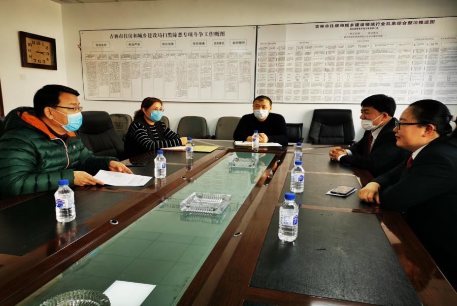 (崔思文法官在住建局 图)崔思文法官带领法官助理崔佳、徐梦竹来到吉林市妇女联合会、吉林市法律援助中心洽谈建立妇女儿童权益保障法治宣传合作机制。