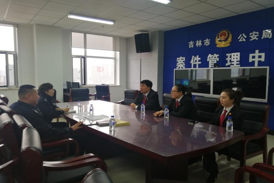 (与珲春街市监所案例研讨 图)由法官吴劲松、刘冬蕊,法官助理王丽君组成的“府院联动小分队”,先后走访了吉林市司法局、公安局、人社局、市监局等十余家行政机关,就本年度府院联动工作同各机关的法治部门进行协调沟通。