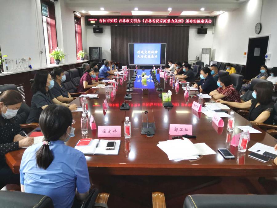 (崔思文法官和徐梦竹法官助理在妇联 图)为进一步推动我市反家暴工作的开展,吉林市召开《吉林省反家庭暴力条例》颁布实施座谈会,市人大监司委、公安局、法院、检察院、司法局、民政局、妇联等相关部门主管领导参加座谈并进行交流发言,吉林铁路运输法院执行局副局长周晓东出席会议并讲话。