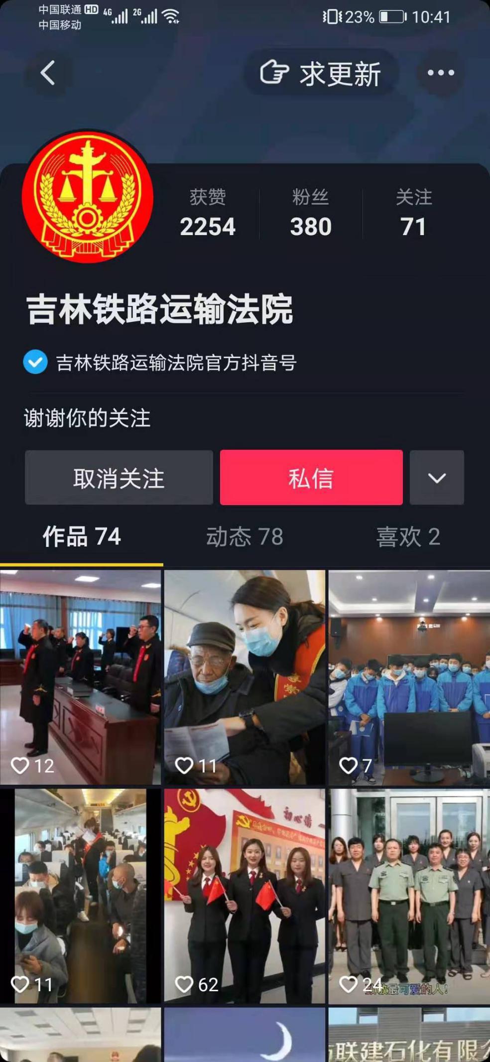 (官方抖音 图)吉林铁路运输法院把普法工作融入司法审判活动,不断探索普法新载体、新形式、新方法,通过依法公正审判、延伸审判职能、强化司法公正等措施,将法院审判资源化为法治教育资源,为吉林高质量发展营造良好法治环境。做吉林经济发展的“护航者”、化解矛盾的“执行者”、公共利益的“维护者”,在践行群众路线上坚守,在运用法治上破题,在深化平安建设上发力,积极倡导百姓和顺、社会和美、吉林和谐的法治文化,在吉林的大地上夯实有为有位、风清气正的执法坐标。我们要借助司法力量培育文明风气,并进一步推动各共建单位形成合力,努力走出一条司法服务保障吉林振兴发展的基层道路。