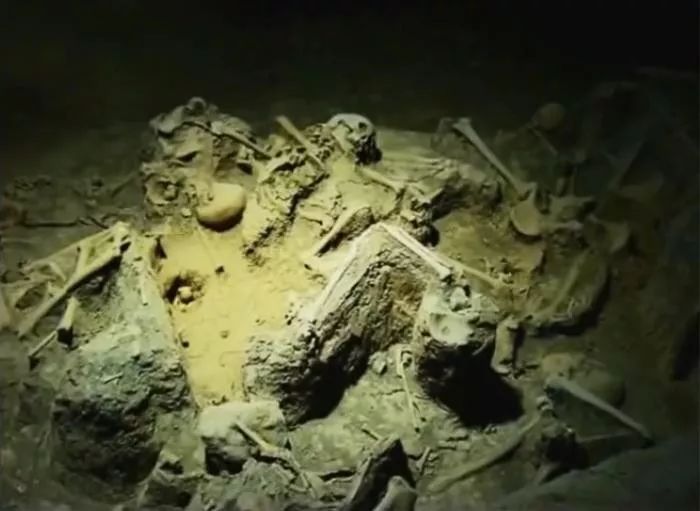 ▲长平之战遗址尸骨坑(纪录片截屏)