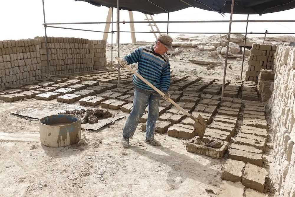 “文物下面的土都已经沙化,稍不注意就可能引起上面文物坍塌。”周鹏说,他们首先要把承台下面的沙土清理掉,然后取当地遗址外围台地表层的黏土来制成土坯,在阴凉处养护14天后,再砌补到台地下方进行加固,每一道工序都非常考究。