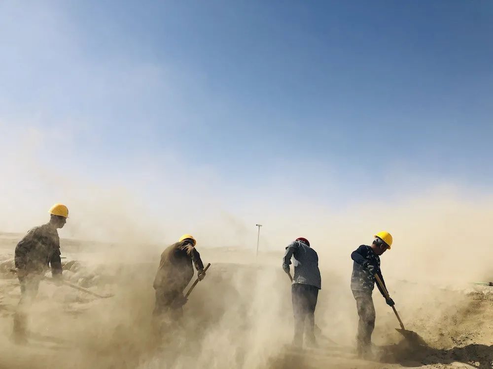 几分钟后,沙尘暴淹没了整个项目部,泥沙从地窝子的缝隙中飘进来,大家用衣服捂住口鼻等待着。两个小时后风沙才消失,此时大家的头上、身上全裹满了沙尘,床上也堆积了一层厚厚的沙尘。“最开始见到沙尘暴还有点紧张,后来就习惯了!” 白海峰说,为了避免耽误工期,遇到一般的沙尘天气,大家就戴着口罩坚持工作。