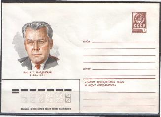1980年,苏联发行纪念特瓦尔多夫斯基诞辰七十周年的纪念封。