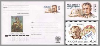 2000年,俄罗斯发行纪念特瓦尔多夫斯基诞辰九十周年的邮票和纪念封。