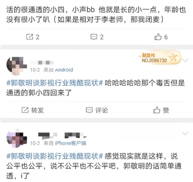 “别人的评价”“行业”“娱乐圈”。一提到外界,把自己摘出去的时候,他们就最通透了。