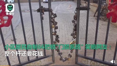 7)辽宁沈阳一小区居民设计了一个66把锁连成的“门禁系统”。每把锁都有标号,小区车主只需拿钥匙打开对应锁头,就能打开大门。居民表示目的就是防止外来车辆进入,是全体业主共同决定的。