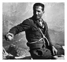 ■ 攀登路上的布扎蒂 Rolly Marchi 摄 下同为了能轻松区分他们,我按字母顺序给他们依次取名:亚历山德罗、巴托洛梅奥、卡欧、多梅尼科、埃托雷、费德里科、格雷戈里奥。