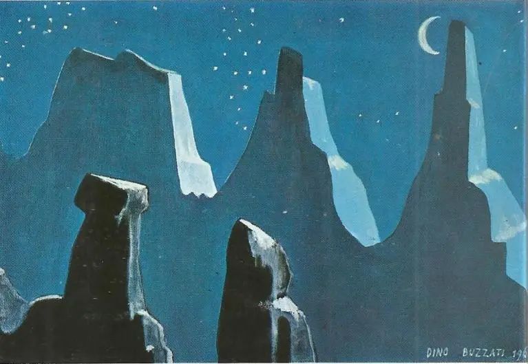 可以说,布扎蒂的一生,是心灵与山峰为伴的一生。青少年时期时经常登山的他,直到1930年代末都没有机会再次攀登山峰,这对他来说可能是莫大的折磨。在1941年发表的一篇文章中,他说,“在大约20年来的每一个神圣的夜晚,我都梦想着山峦”。战争结束后,布扎蒂继续攀登、绘画和写作,并在小说创作上转向短篇故事。《六十个故事》正是这一时期的集大成之作。六十个故事,也是六十段神秘莫测的旅程。在这其中,想象与现实纠缠在一起,四处充斥着秘密的维度、难解的符号、恐惧、死亡、噩梦、人类的孤独、令人不安的预言、奇异的梦,甚至外星人与恐龙。在他的故事里,总有一些悬而未决的、不可理解的、隐蔽的、令人不安的东西,而所有这些又都以一种简单平实的笔法书写出来,传递出复杂而神奇的世界观。