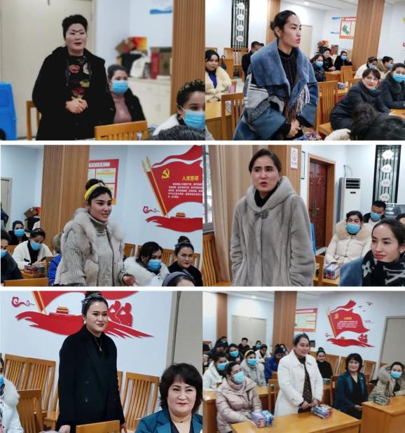 在现场的新疆籍务工妇女听了宣讲报告后,满怀喜悦、踊跃发言。汗祖热·买买提:今天参加座谈会的30名妇女,在浙江生活最长的20多年,短的4年左右。我们一家就在这里生活20多年了,当地各级领导和社区对我们特别关心,工作、生活和孩子受教育都没有问题,自治区驻浙江省工作组及时为我们排忧解难。社区给我们成立了石榴籽妇联,我是妇联主席。我热心公益,也是石榴籽爱心基金会会长,姐妹们都特别感恩现在的好政策、热爱第二故乡。